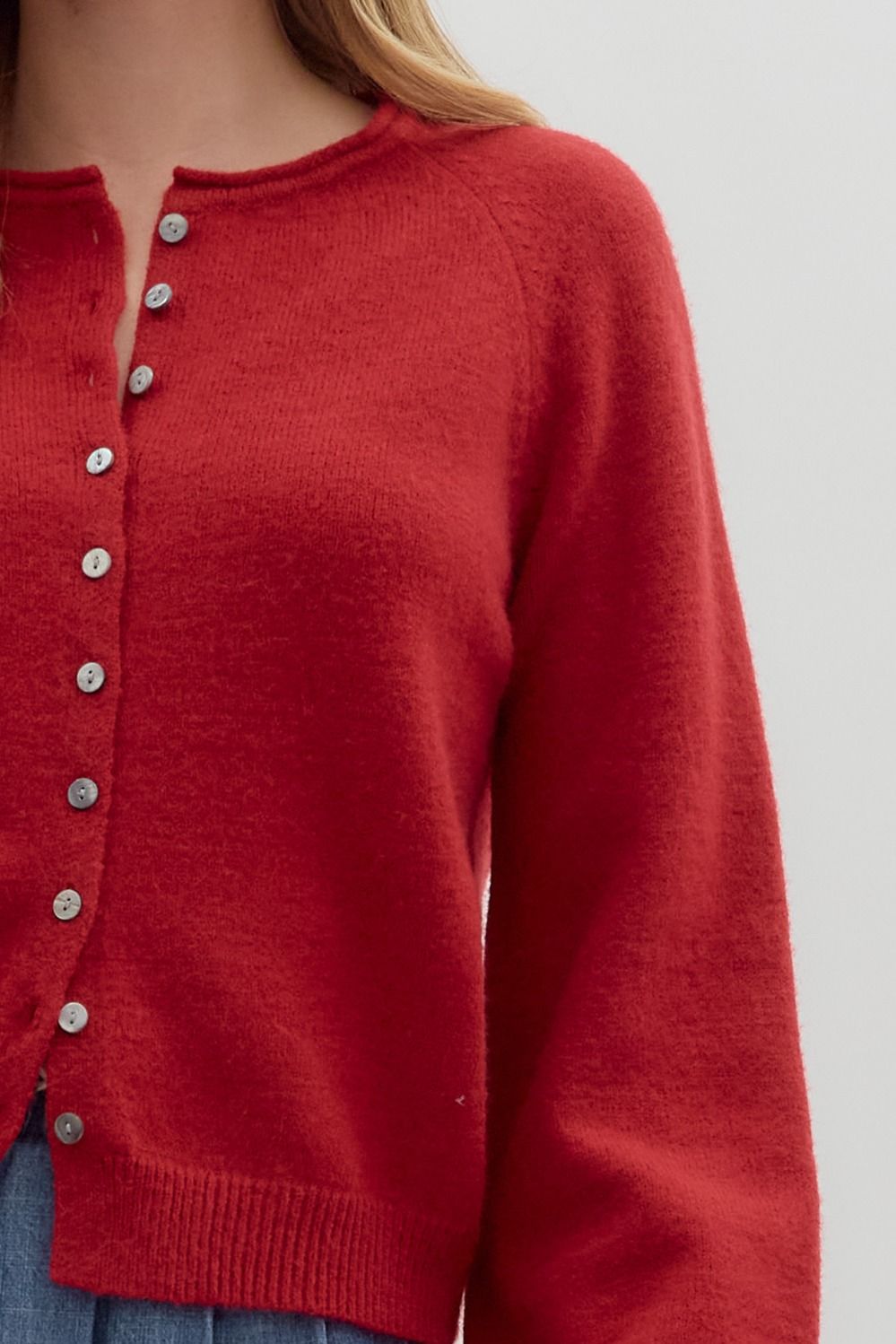 A timeless silhouette in a standout color! Our vibrant red cardigan is designed to be the hardest working piece in your closet. Dress it up with a silk skirt or keep it casual with your favorite jeans. The classic crewneck and chic, slightly puffed sleeves make it an instant outfit-maker. Get ready for the compliments!